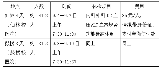 1、体检:根据省教育厅、省卫计委、省物价局《关于加强全省普通高等学校学生健康体检工作的通知》的精神,校医院对 2019秋季入学的研究生的体检工作作如下安排: