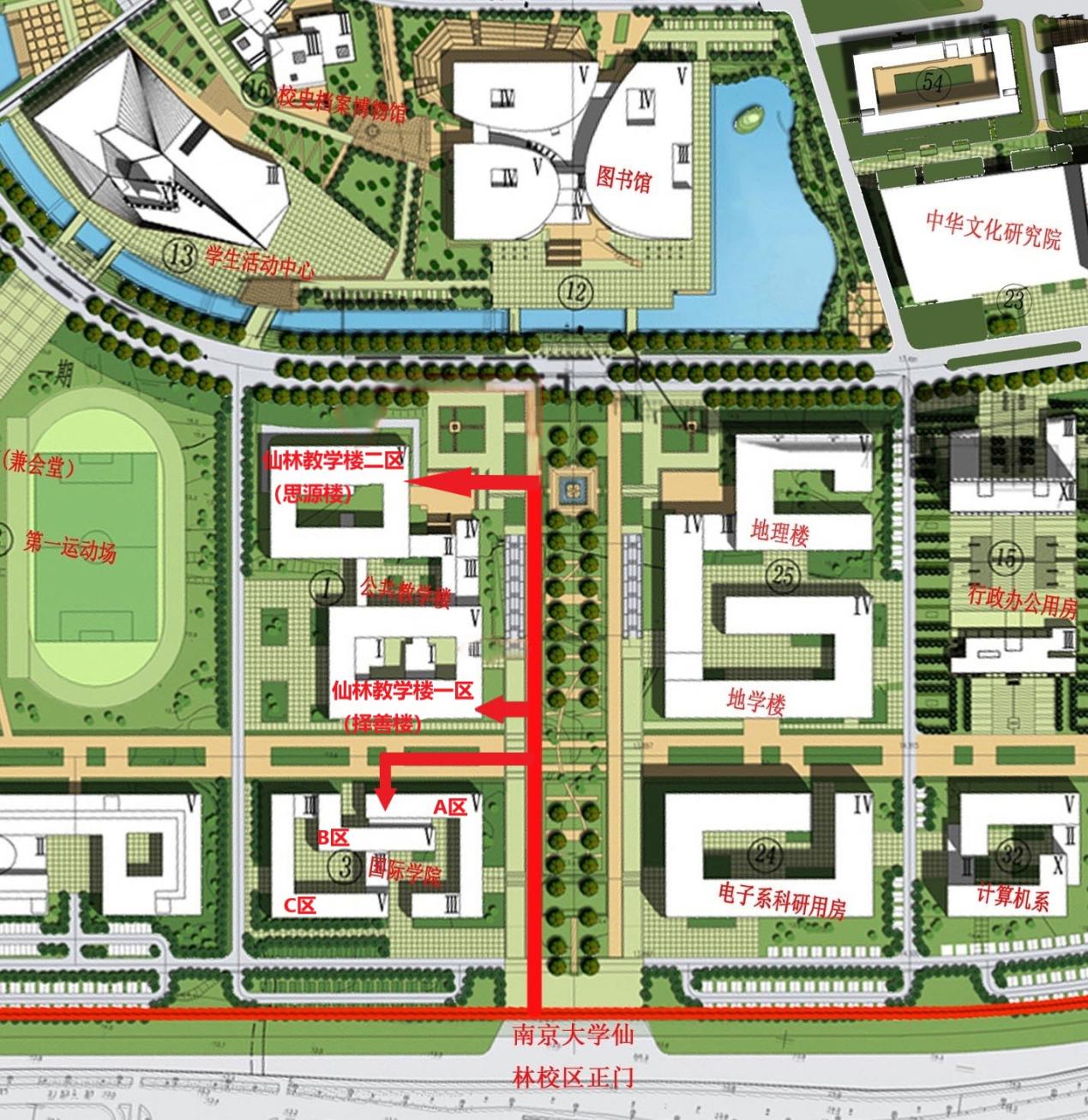 请根据准考证上的考试地点,提前查询本人考场所在位置(附件1:考场安排表)。考试当天,请根据考场号、教室名称前往教学楼相应的区域、楼层,如“逸B105”指国际学院(邵逸夫楼)B区1层105教室。我校在仙林校区南门(地铁2号线南大仙林校区站对面)、鼓楼校区汉口路正门设置唯一专门通道,请切勿由其他入口进入考点,以免影响考试。