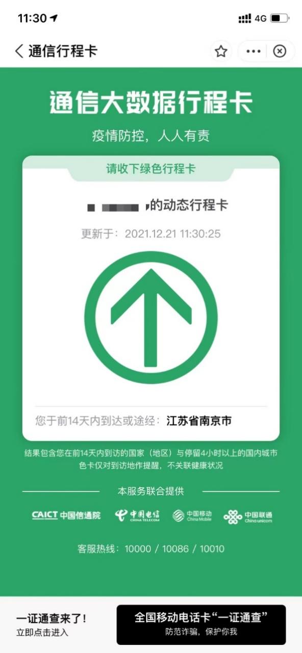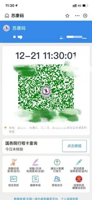 在苏康码下方,大家可以看到“通信大数据行程卡”的字样,请点击获取考生本人的“行程卡”。