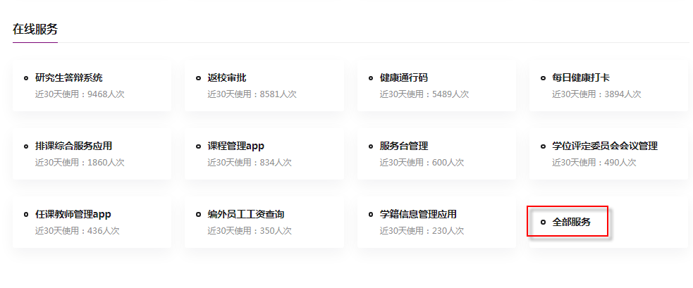 在办事大厅页面找到”在线服务”栏目,点击”全部服务”。