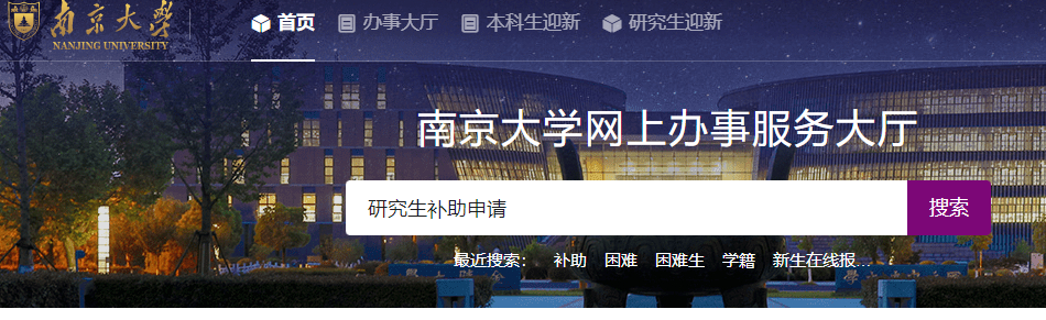2.进入网上办事服务大厅,搜索“研究生补助申请”
